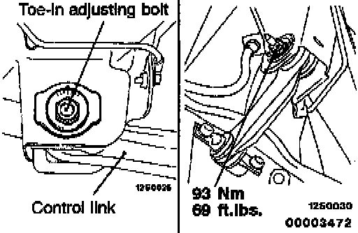 2. Adjust by turning the toe adjusting bolt (mounting bolt on the inside of the control link).