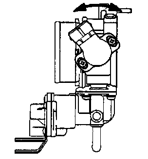 6. Slowly turn the throttle position sensor clockwise until the point at which the idle switch is turned OFF is found. Tighten the throttle position sensor installation bolt at that position. Proceed to step 8.