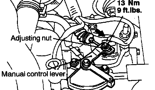 2. Loosen the control cable to manual control lever coupling nut to free the cable and lever.