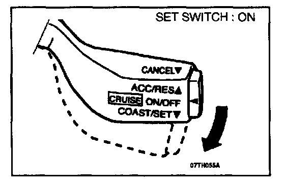 NOTE: If the vehicles speed decreases to approximately 15 km/h (9 mph) below the set speed because of climbing a hill for example, the auto-cruise control will be cancelled.
