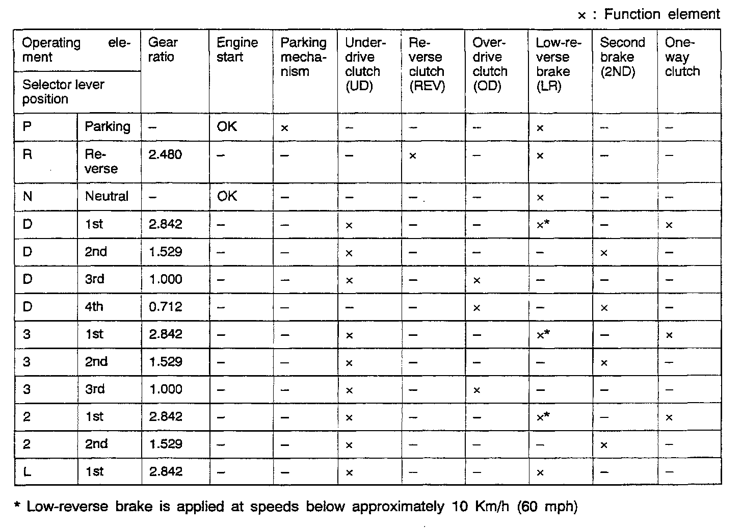 F4A51 4-spd A/T, Standard Hydraulic Pressure:
