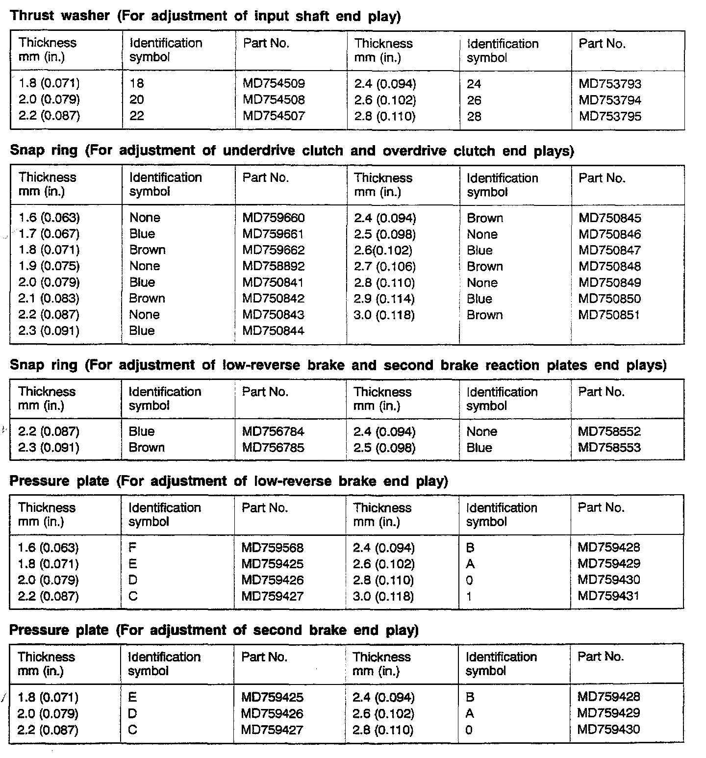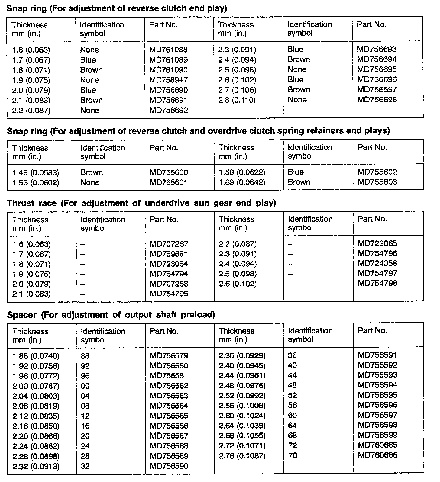 F4A51 4-spd A/T, Reverse Clutch End Play, Sun Gear& Output Shaft:
