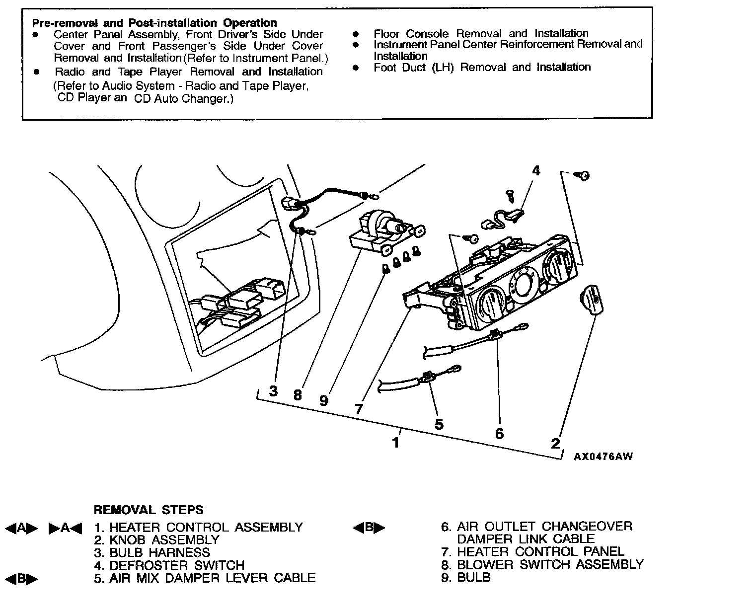 HEATER CONTROL ASSEMBLY AND BLOWER SWITCH ASSEMBLYREMOVAL AND INSTALLATION