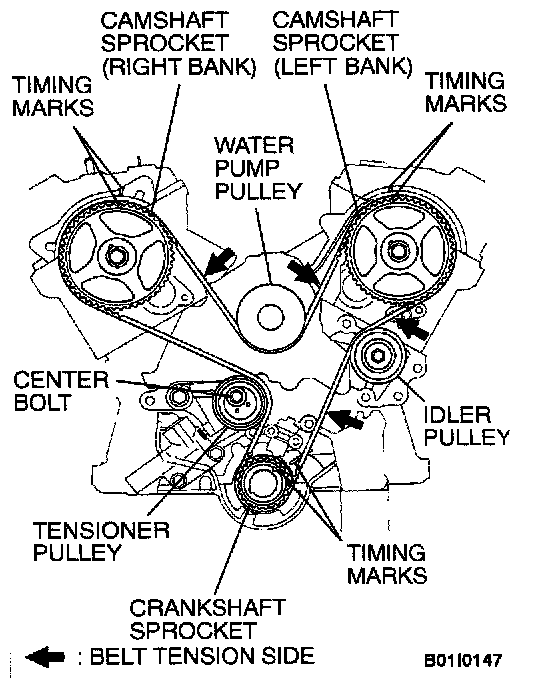 Incorrect removal or installation of the timing belt can result in damage to internal engine components.