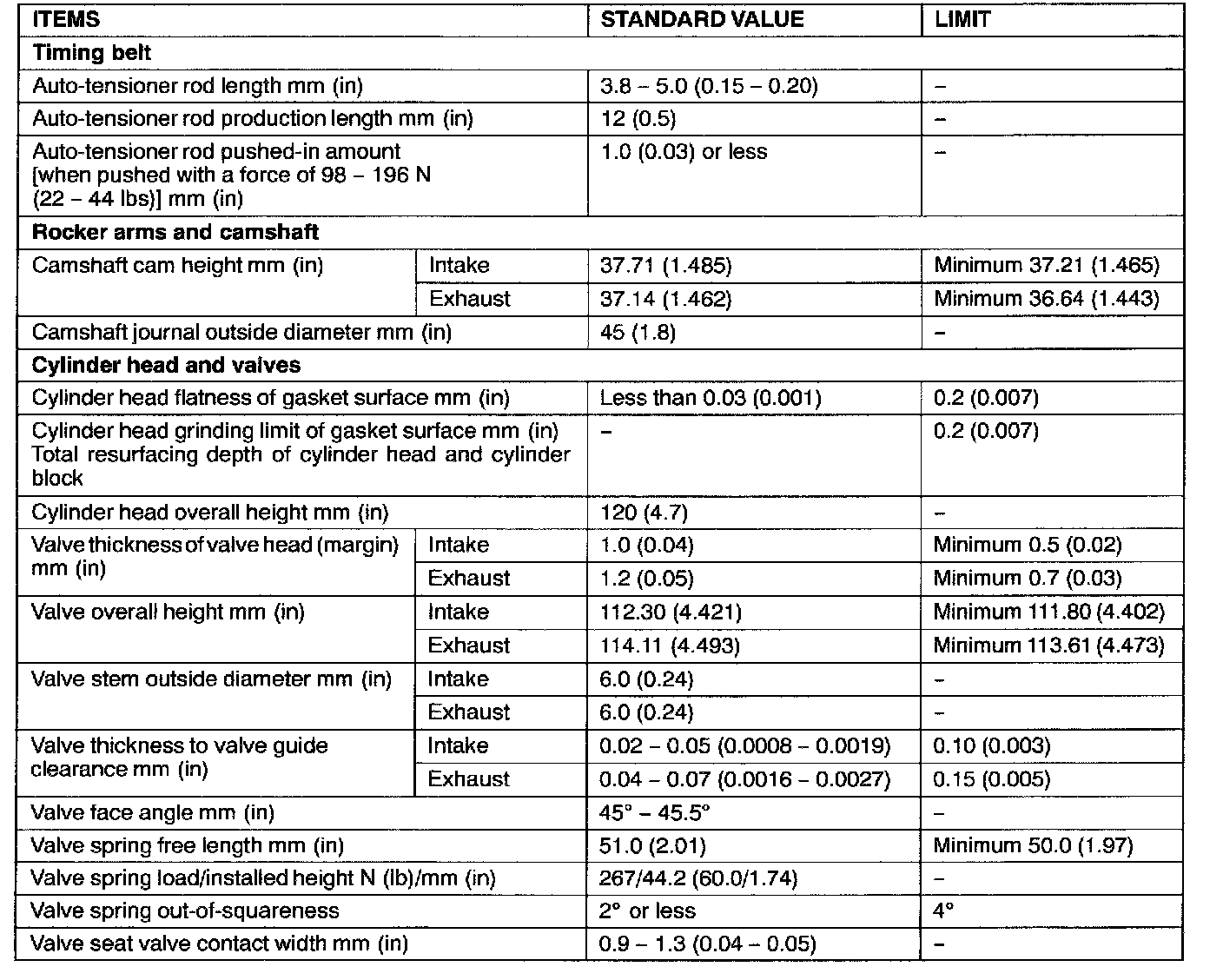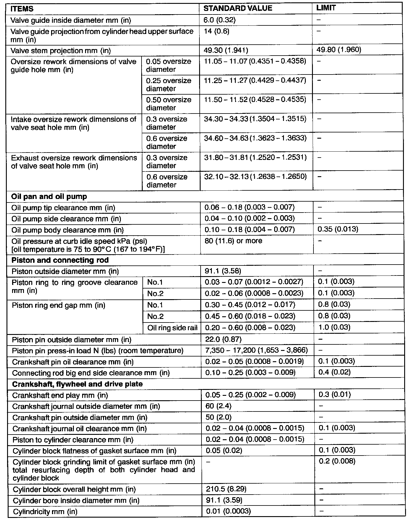 Engine-Overhaul Specifications