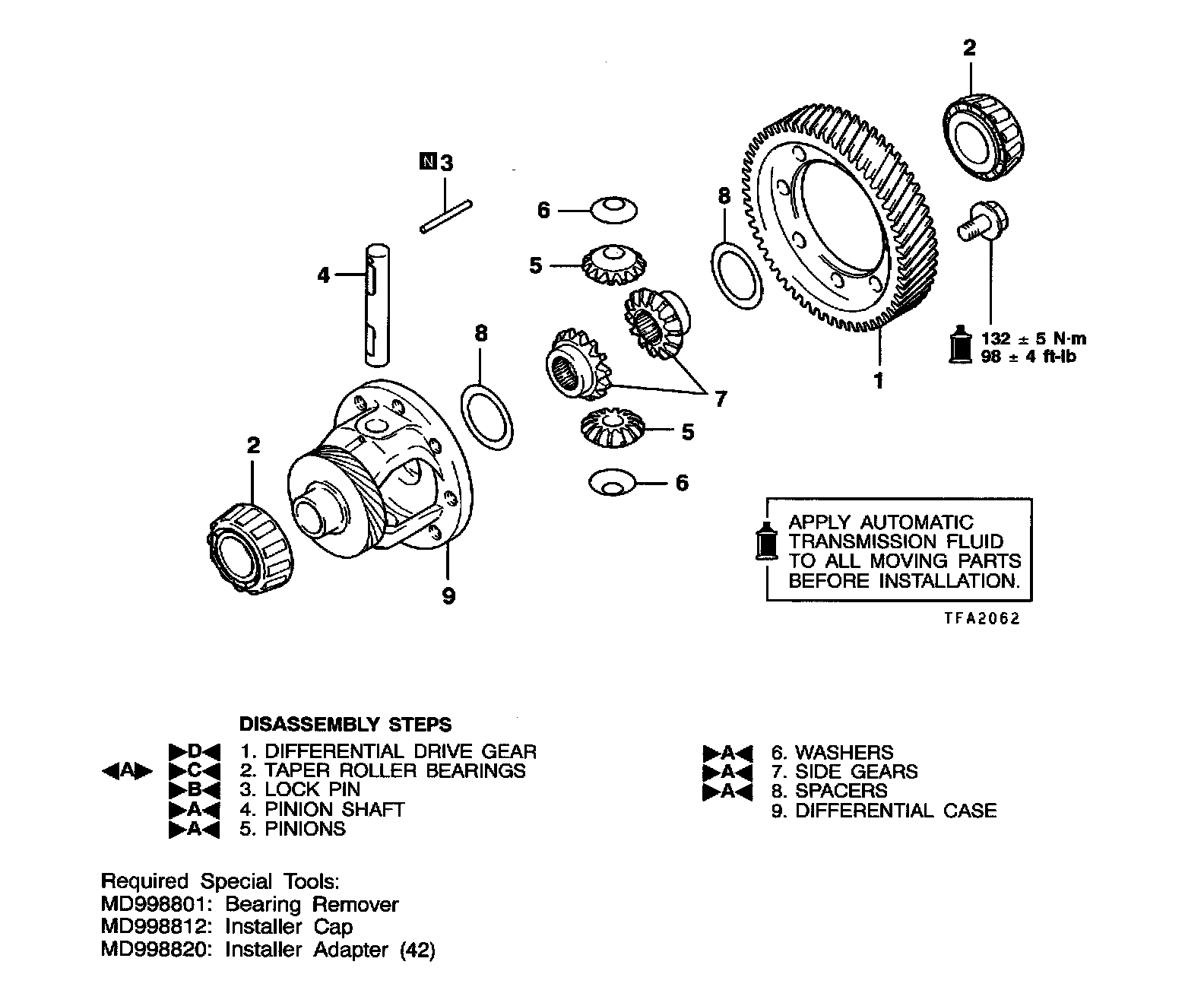 >A< Spacer, Side Gear, Washer, Pinion And Pinion Shaft Installation