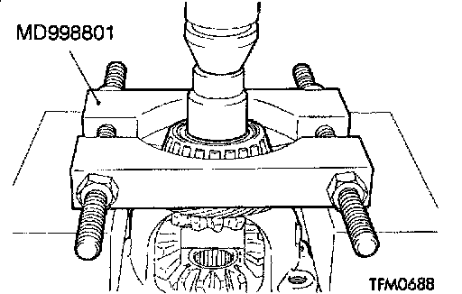 1. Support the taper roller bearing with special tool MD998801, and then set them on the press.