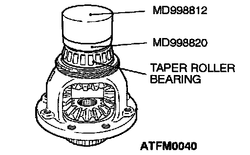 Using special tools MD998812 and MD998820, press install the taper roller bearing with the press.
