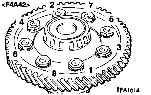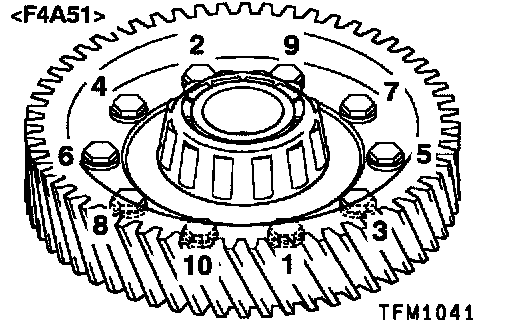 Apply ATF to the bolt, and then tighten the bolts to the specified torque in the shown sequence.