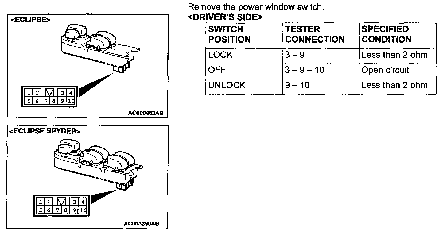 Power Door Lock Switch: Testing and Inspection