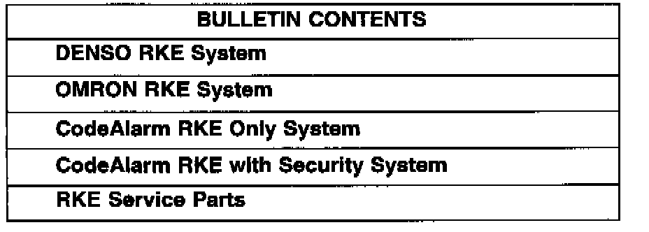 The RKE system must be properly identified in order to service the system or program the transmitter. This bulletin contains basic service information for RKE systems on 2000 models.