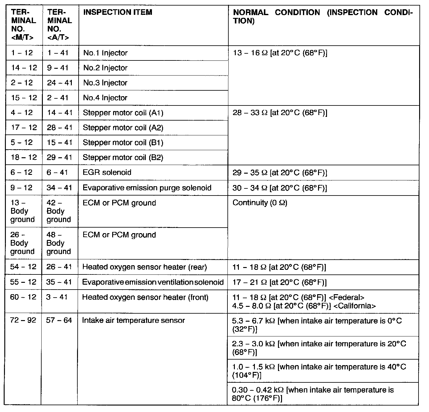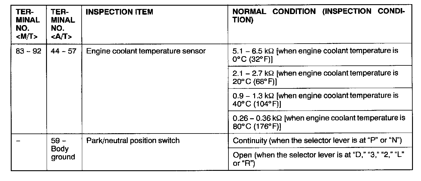 ECM <M/T> Or PCM <A/T> Connector Terminal Arrangement:
