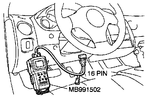 1. Connect scan tool MB991502 to the data link connector (16-pin).