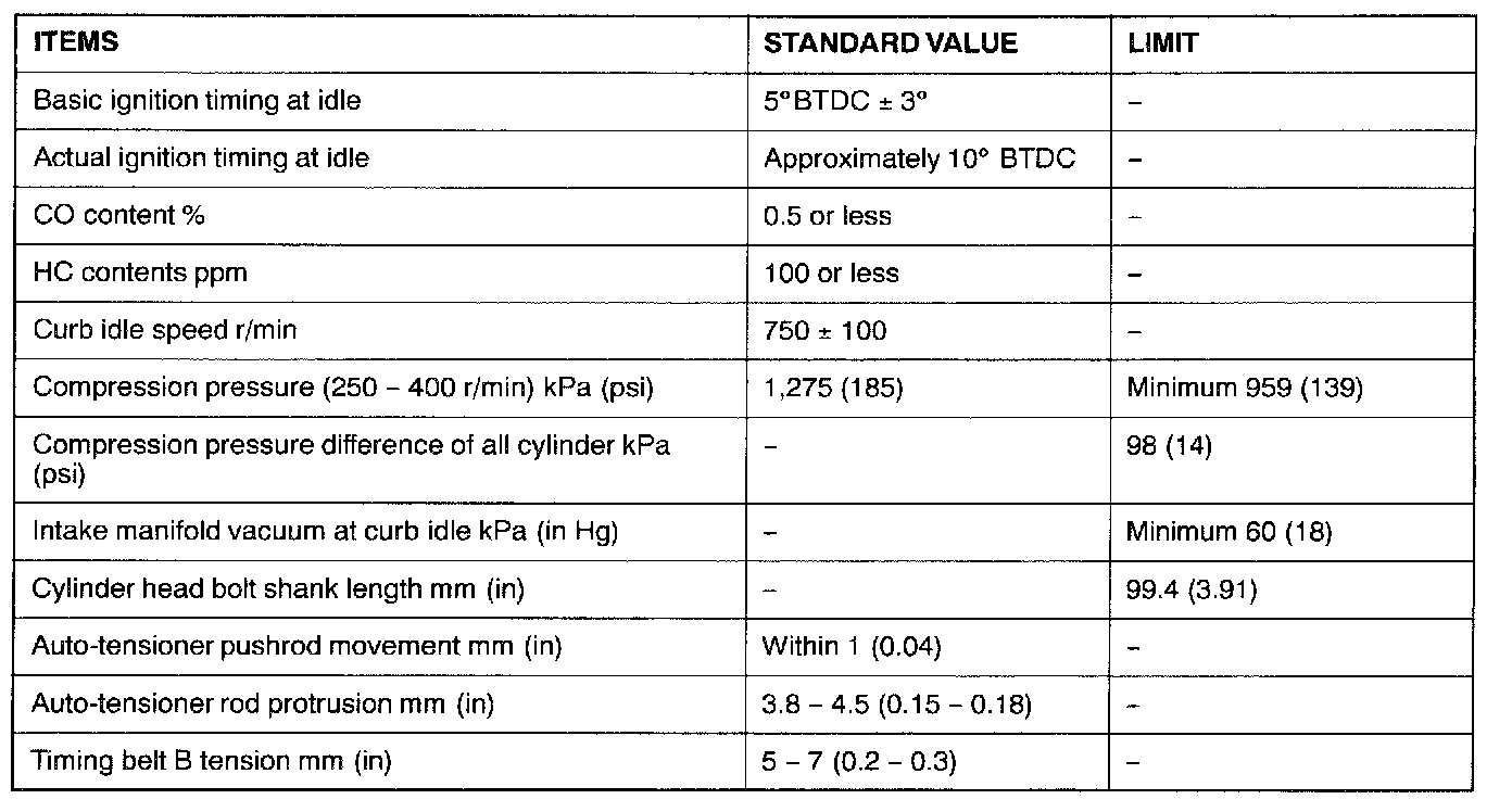 Engine-On Vehicle Service Specifications