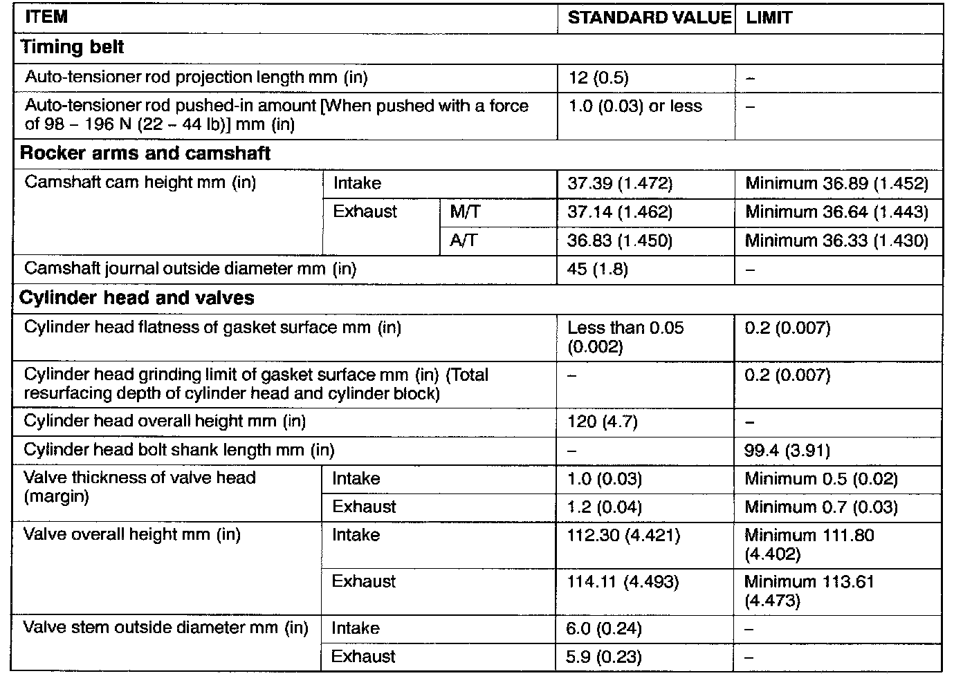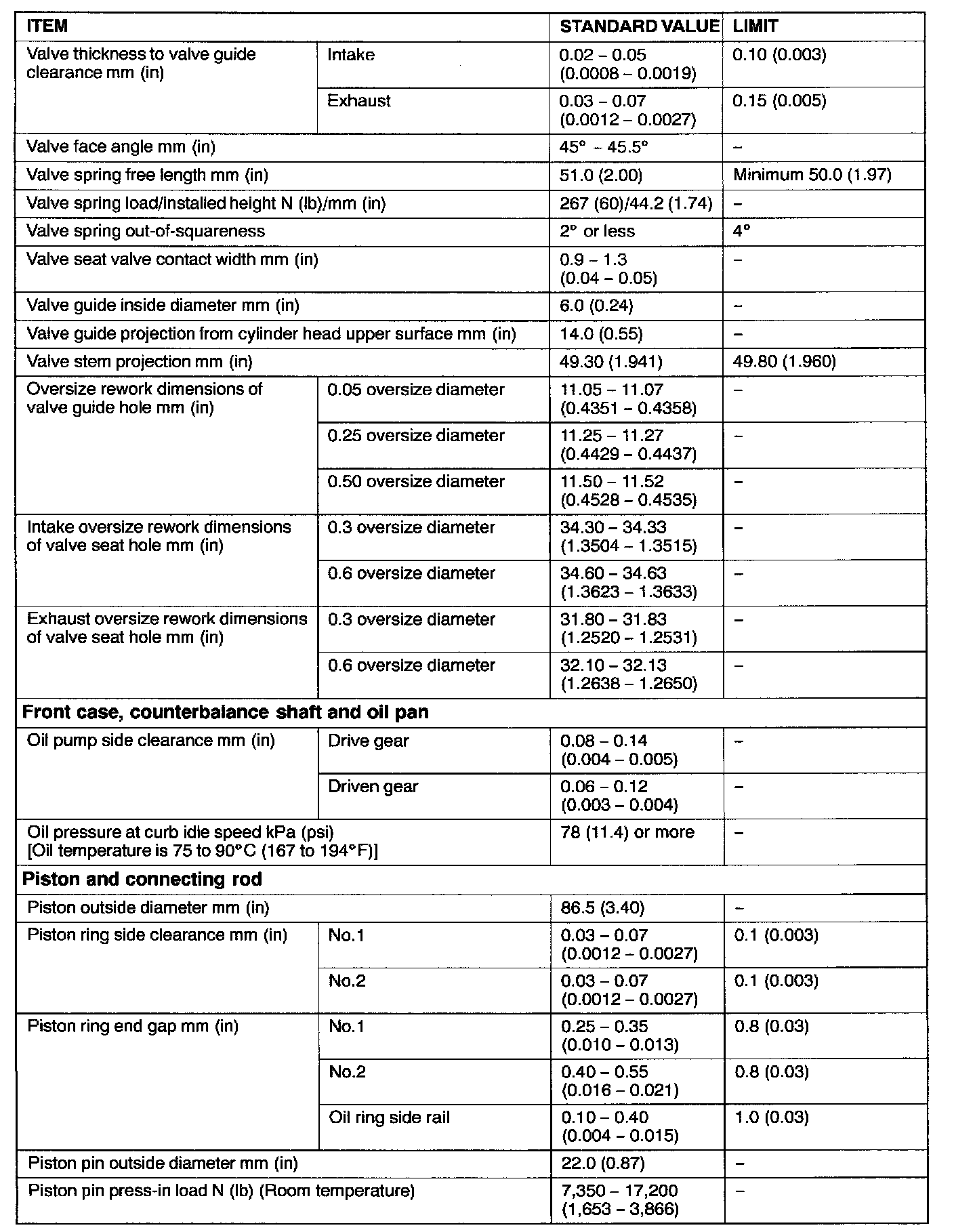 Engine-Overhaul Specifications