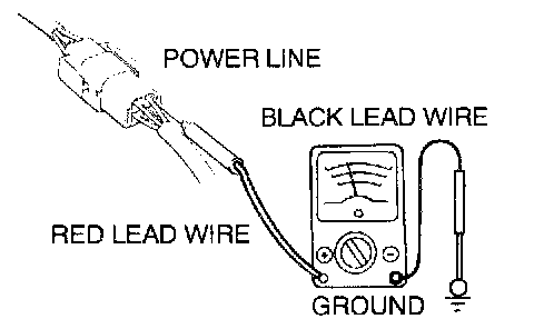 A voltmeter is used to measure the circuit voltage. Normally, the positive (red lead) probe is applied to the point of voltage measurement and the negative (black lead) probe to the body ground.