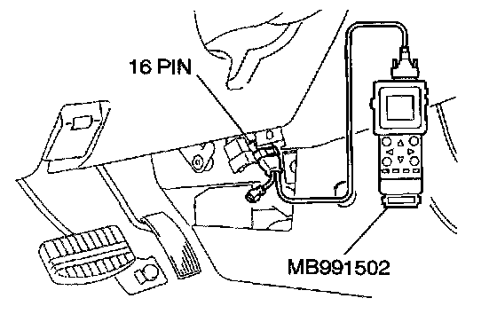 STEP 2. Using scan tool MB991502, read the diagnostic trouble code (DTC).