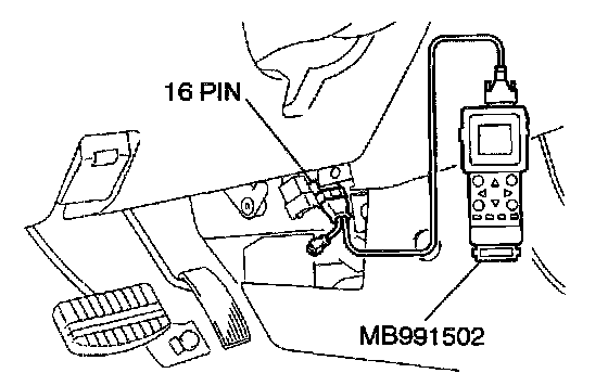 CAUTION: To prevent damage to the scan tool, turn the ignition switch "OFF" before connecting or disconnecting the scan tool.