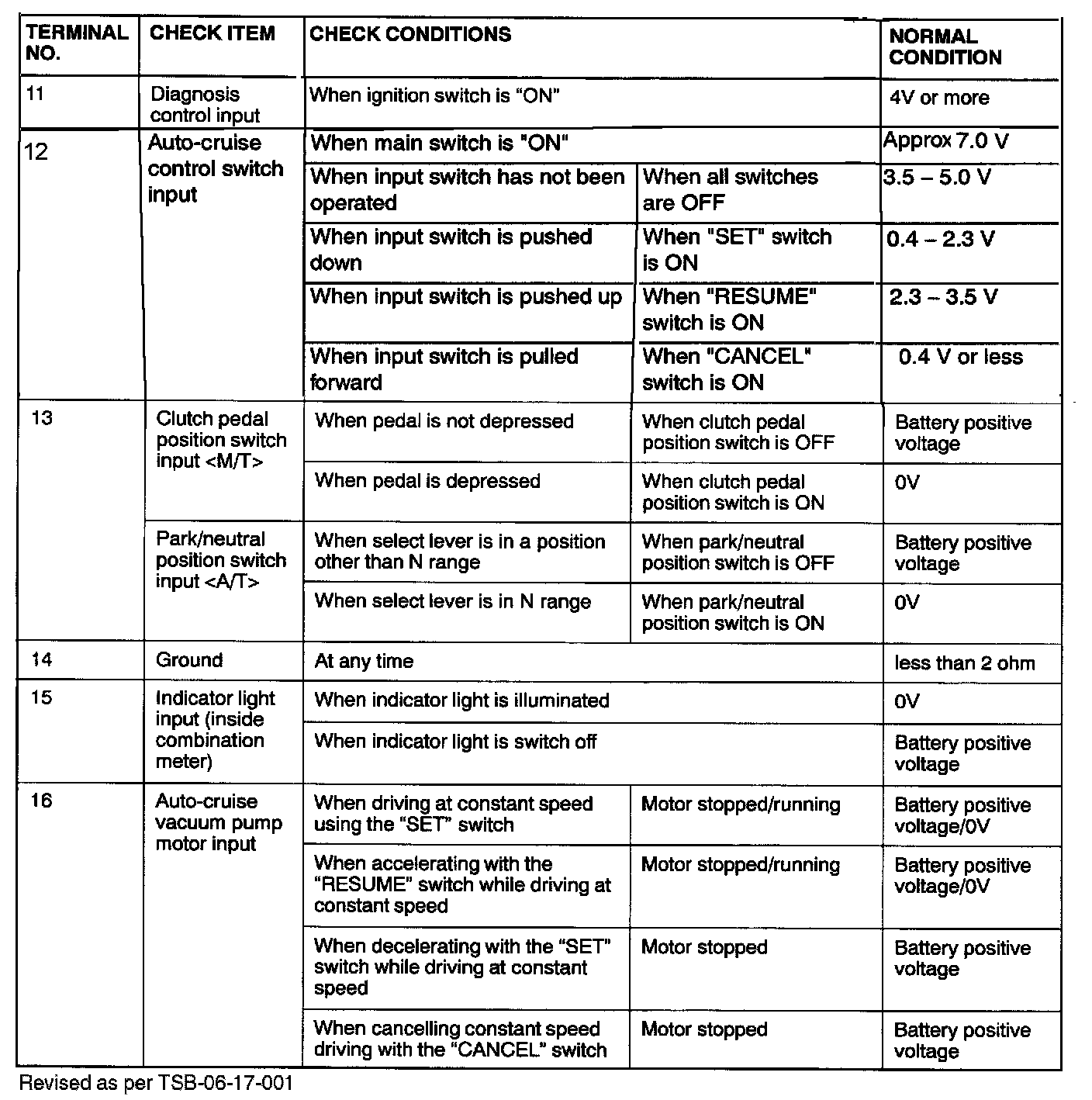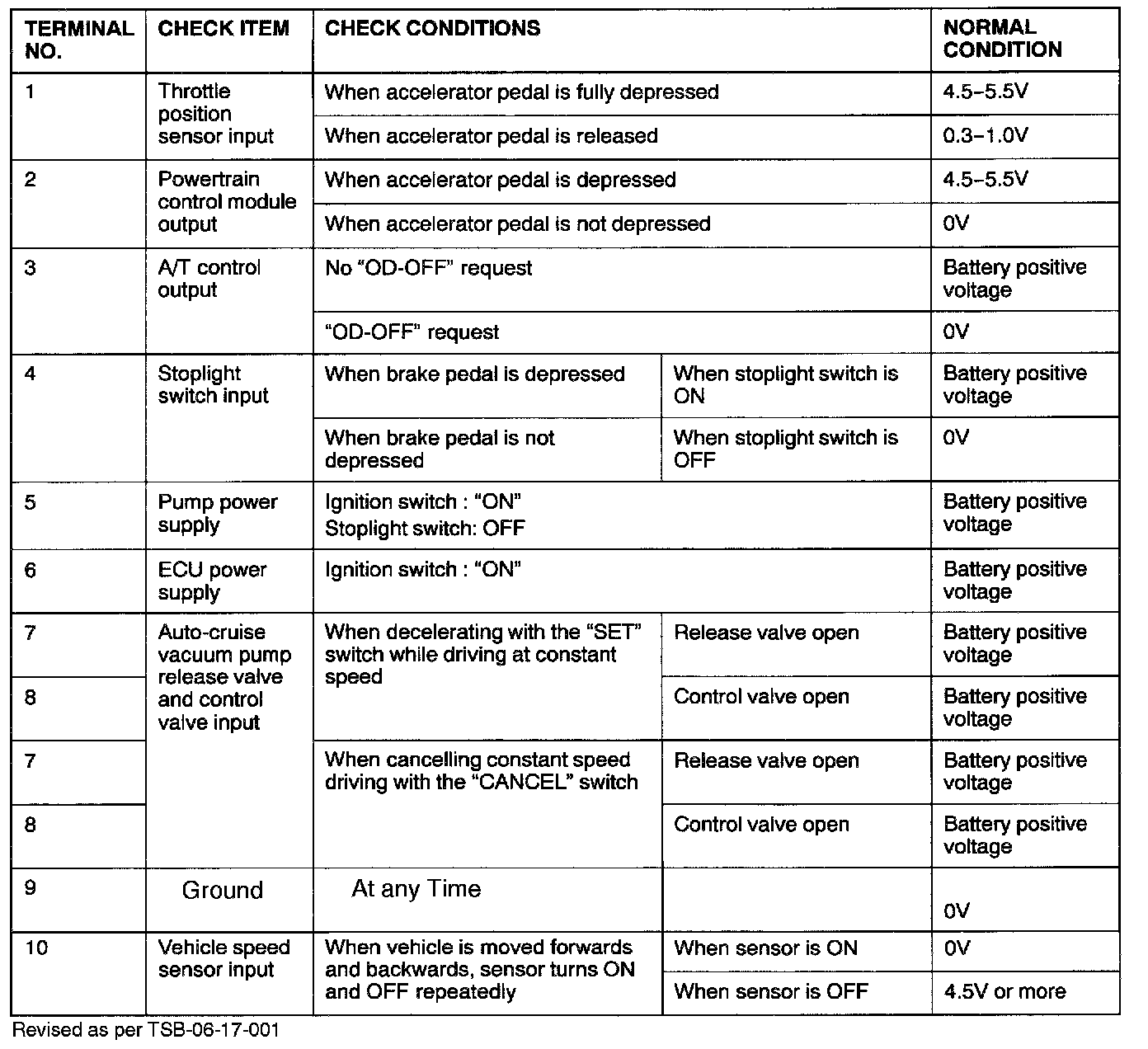 Pinout Values and Diagnostic Parameters