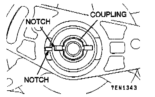 2. Rotate the distributor shaft coupling until its notch (mating mark) is lined up with the notch (mating mark) in the housing.