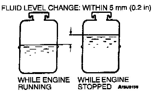 3. Check the fluid in the oil reservoir for foaming or milkiness. Check the difference of the fluid level when the engine is stopped, and while it is running. If the change of the fluid level is 5 mm (0.2 inch) or more, air bleeding should be done.