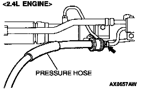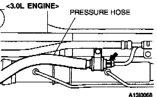 2. Install the pressure hose at the power steering oil pump side as shown in the illustration.