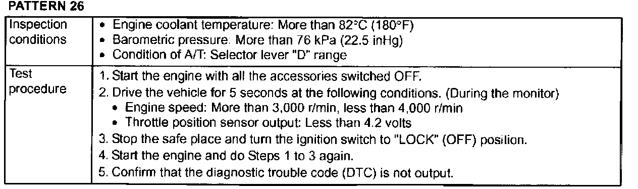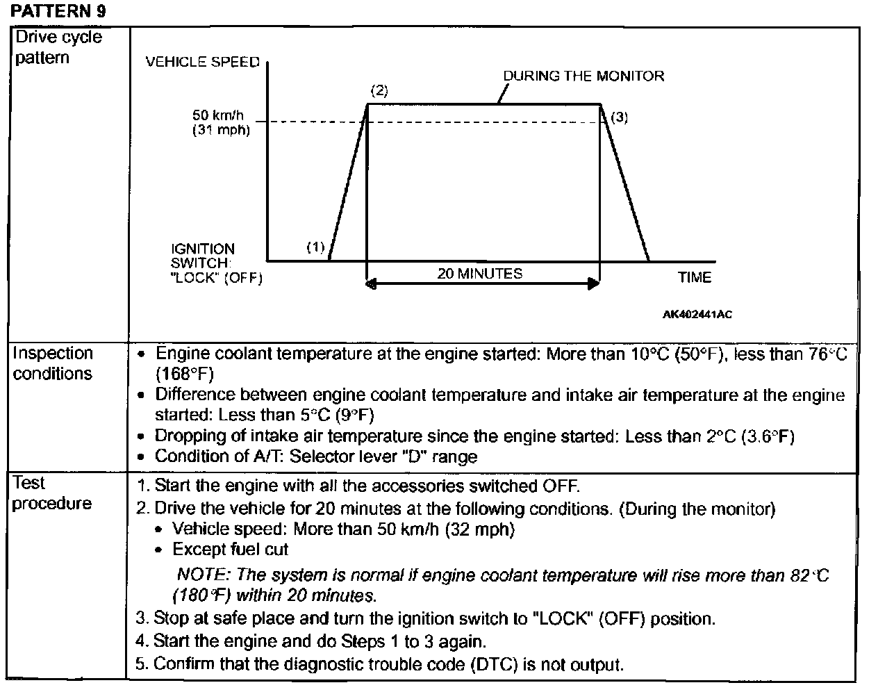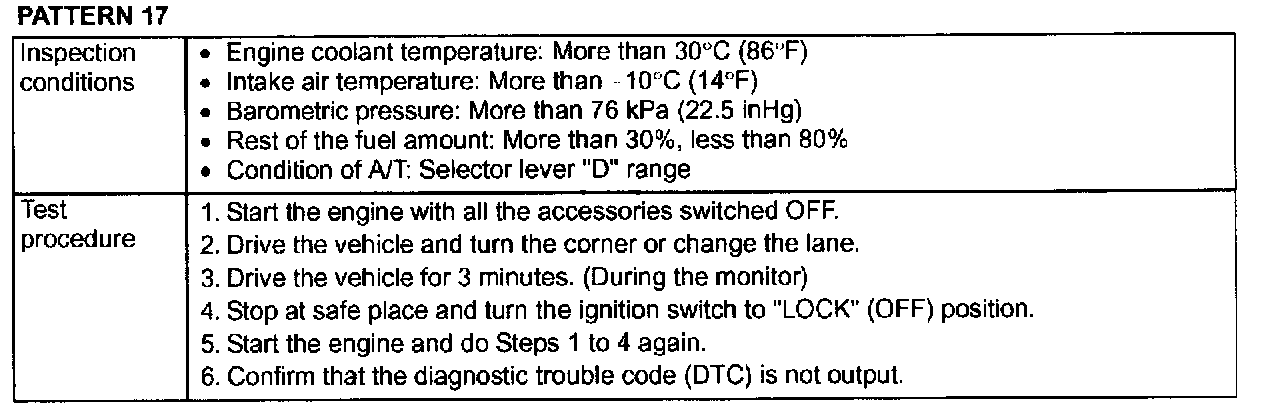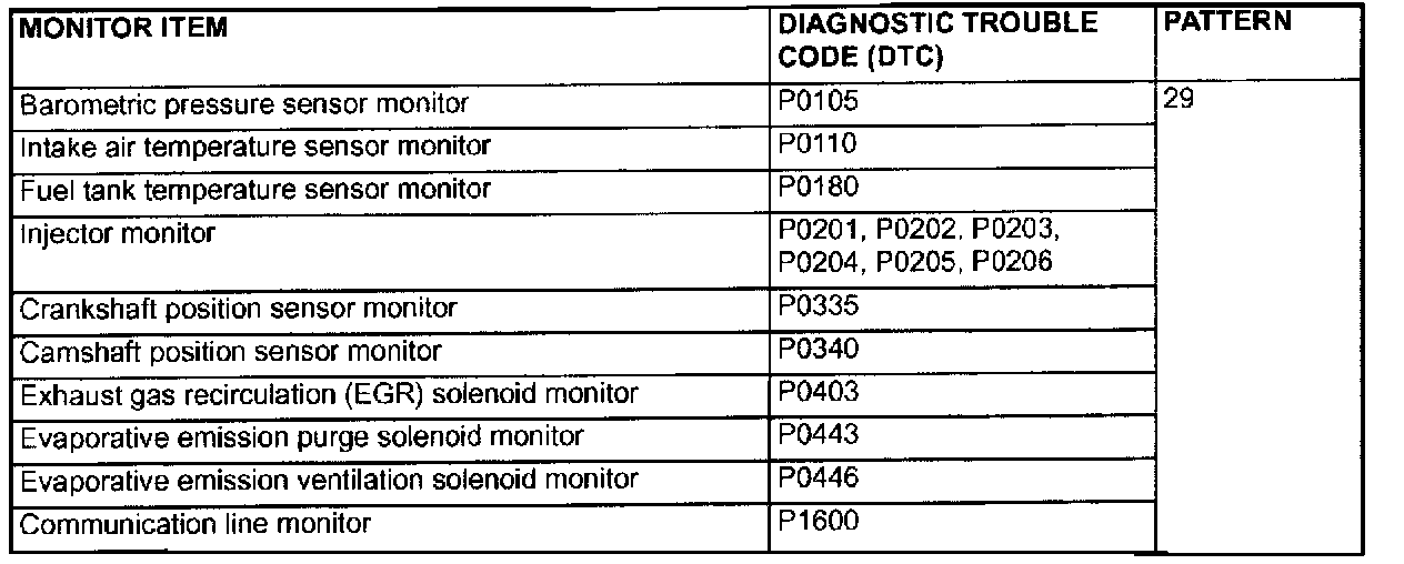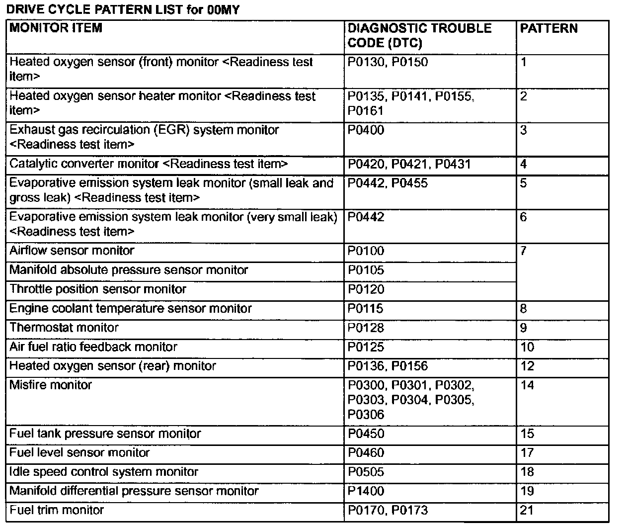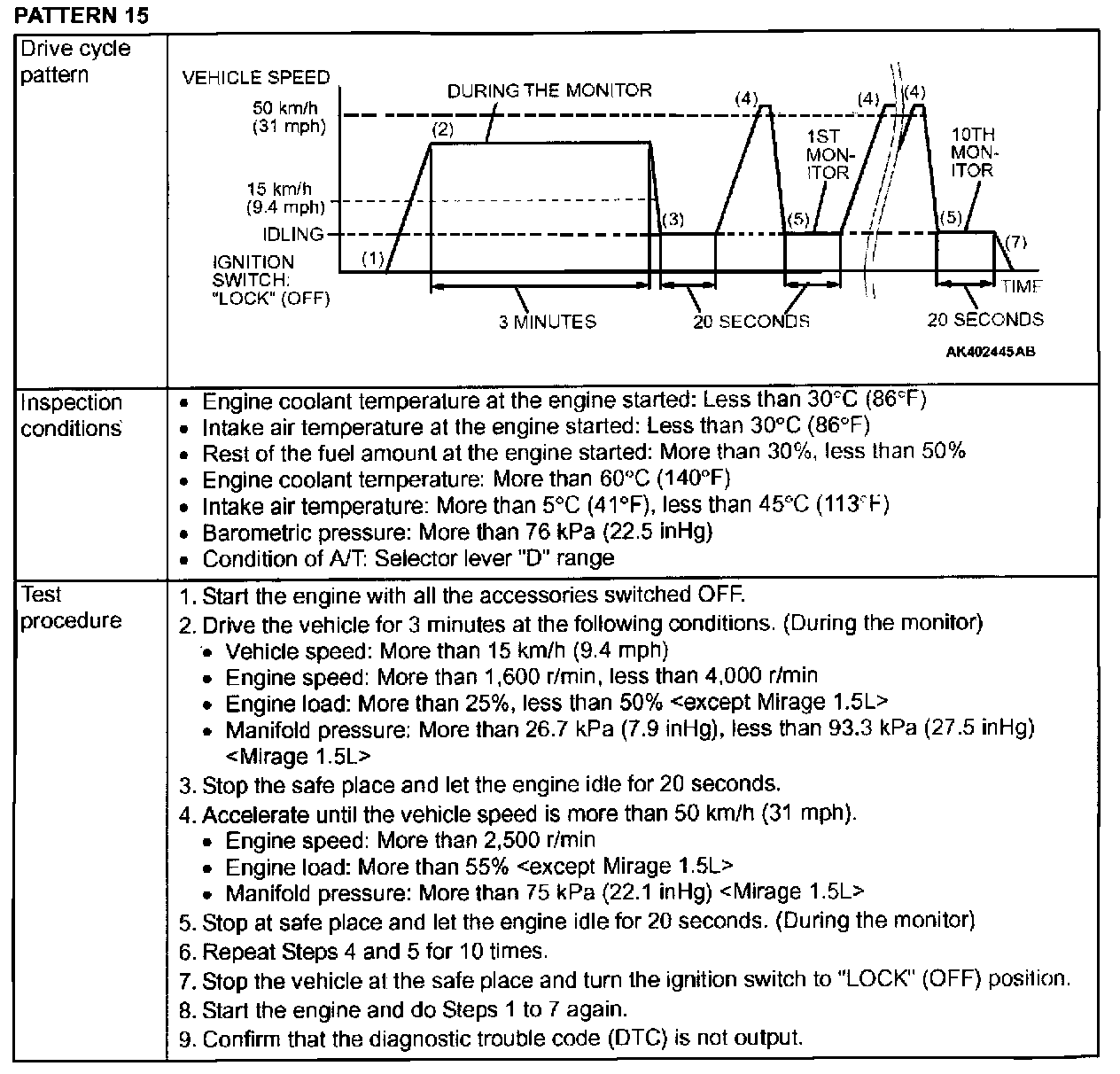 Drive cycle patterns are not established for Vehicle speed sensor monitor (DTC P0500) Closed throttle position switch monitor (DTC P0510). Power steering pressure switch monitor (P0551). Please reference the MUT data list to judge whether these monitor items are normal.