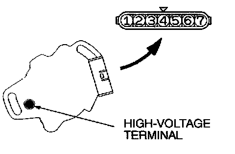 2. Measurement of the secondary coil resistance Measure the resistance between the high-voltage terminal and connector terminal 1.
