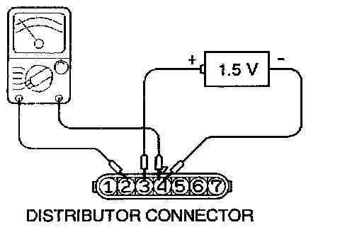 1. Measurement of the primary coil resistance Measure the resistance between connector terminals 1 and 2 of the distributor.