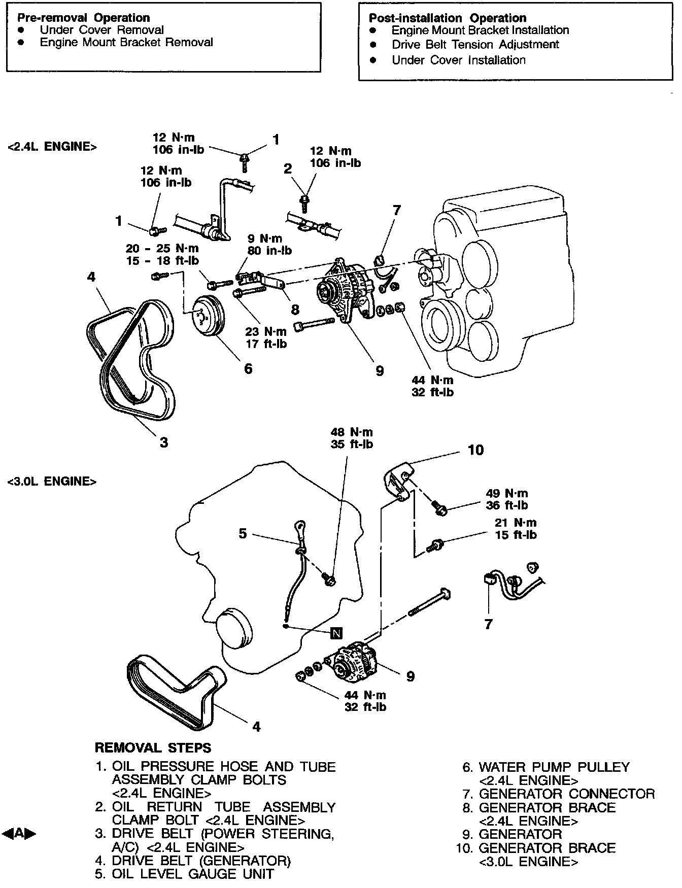 DRIVE BELT (POWER STEERING, A/C) REMOVAL