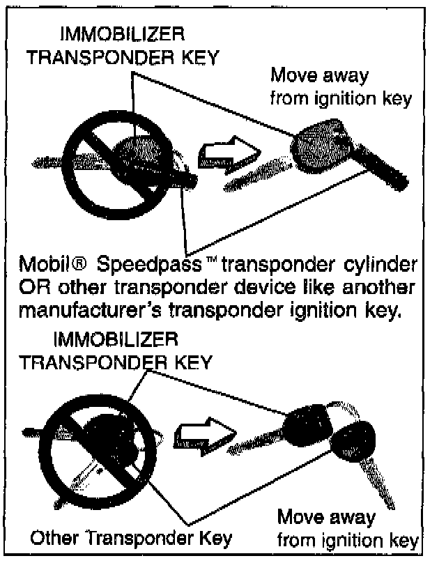 This bulletin contains information concerning a no-start condition caused by interference between the Immobilizer-equipped vehicle's transponder ignition key and another transponder device like the Mobil(R) Speedpass(TM) key-ring transponder cylinder or another vehicle manufacturer's transponder ignition key.