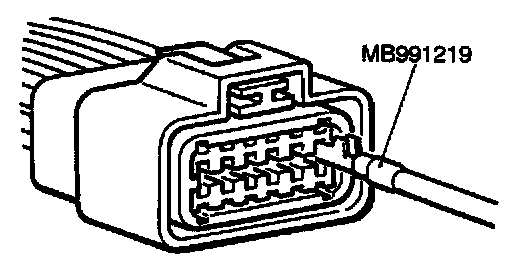 Use special tool, MB991219, to inspect the engagement of the male pins and female pins.[Pin drawing force :1 N (0.2 pound) or more]