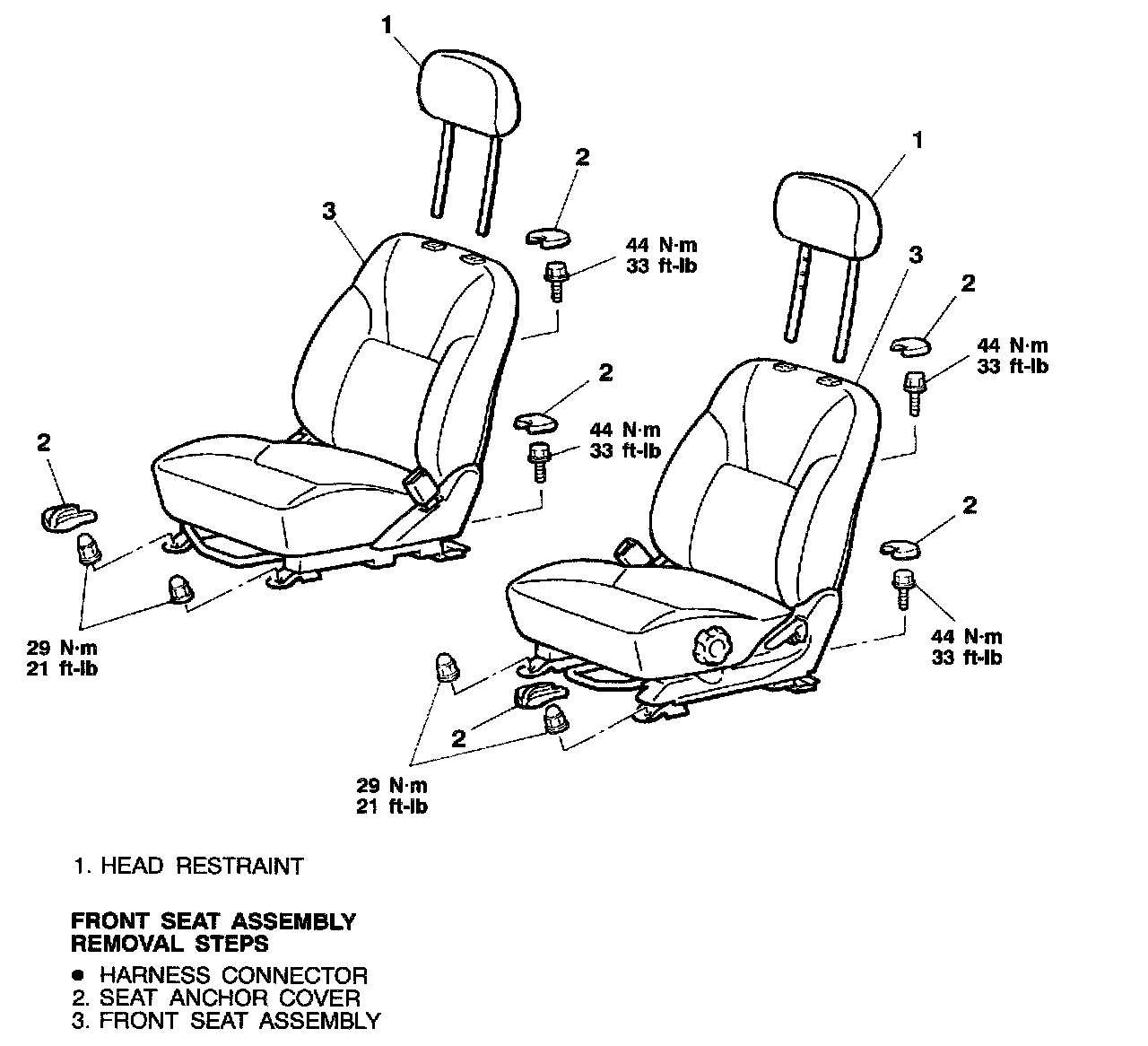 NOTE: Install each seat assembly mounting bolt in every installation location, then tighten to the specified torque.