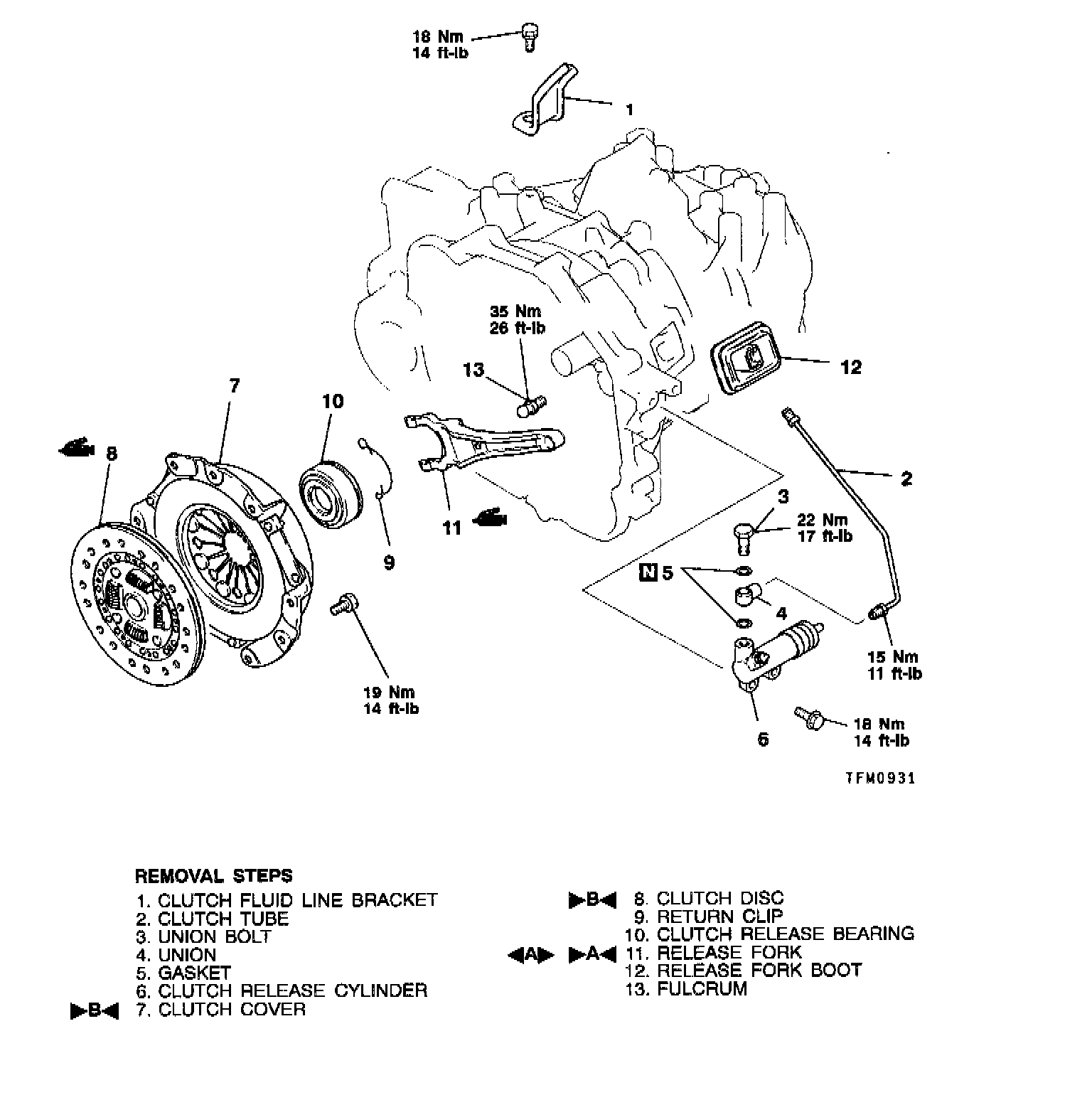 >B< CLUTCH DISC AND CLUTCH COVER INSTALLATION