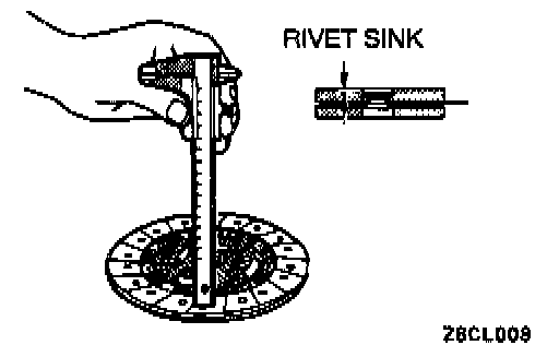 2. Measure the rivet sink and replace the clutch disc if it is below the limit.
