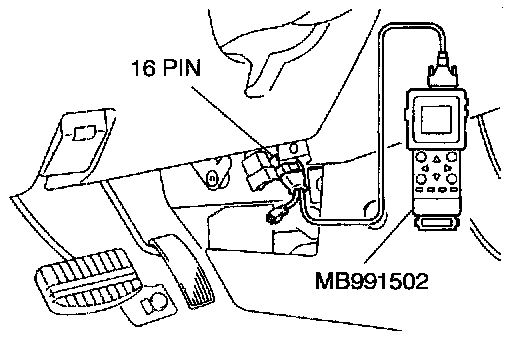 CAUTION: To prevent damage to scan tool MB991502, make sure that the ignition switch is "OFF" before connecting or disconnecting the scan tool.