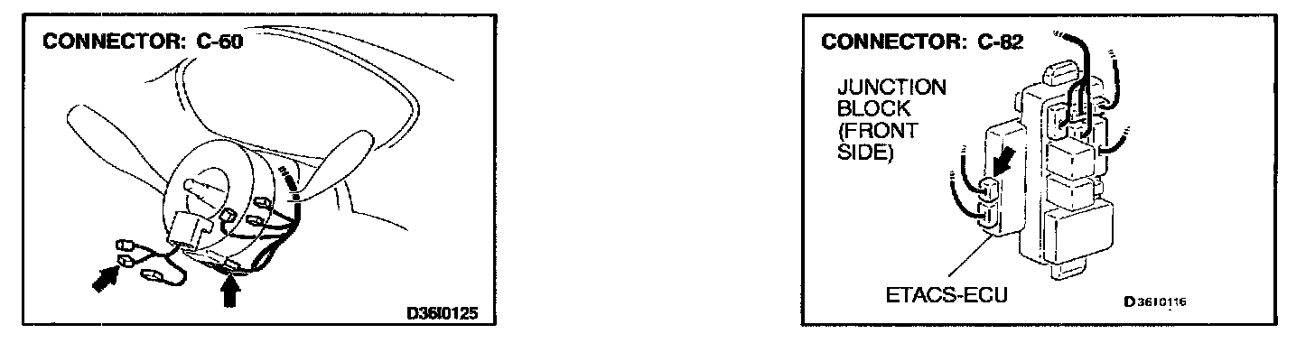 3. Check the harness wire between column switch connector C-60 and ETACS-ECU connector C-82.