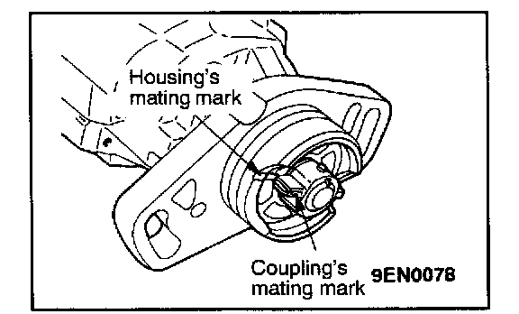2. Installation the distributor to the engine while aligning the distributor housing and coupling mating marks.