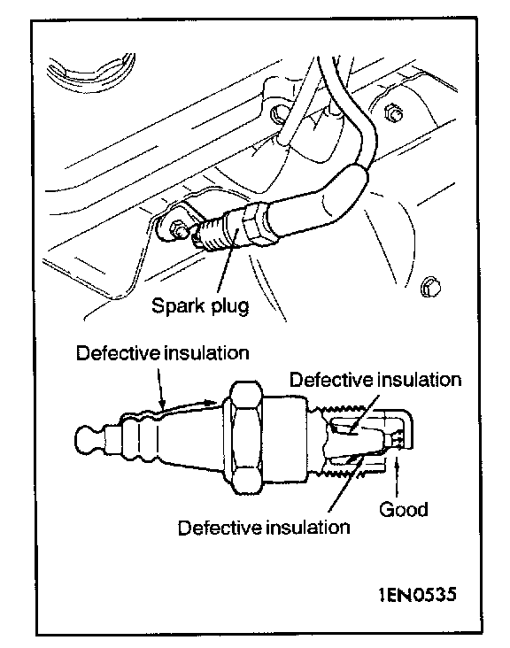2. Ground the spark plug outer electrode (body), and crank the engine. Check for spark across the electrodes.