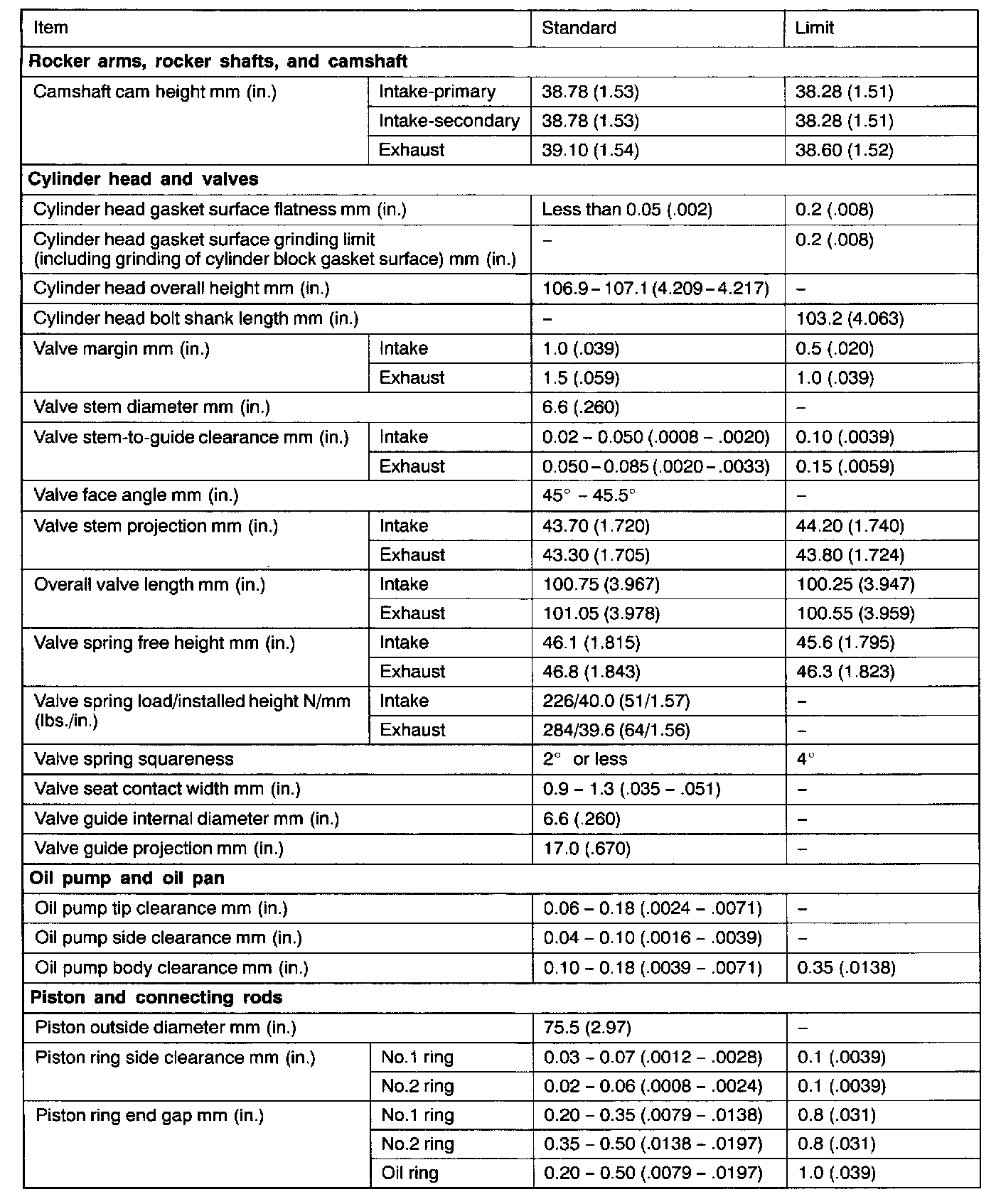 Engine-Overhaul Specifications