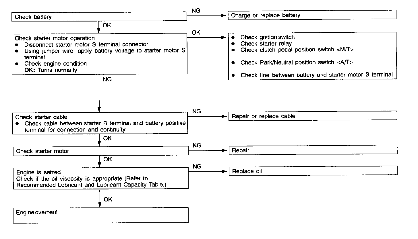 The starting system troubleshooting guide is shown in the chart.