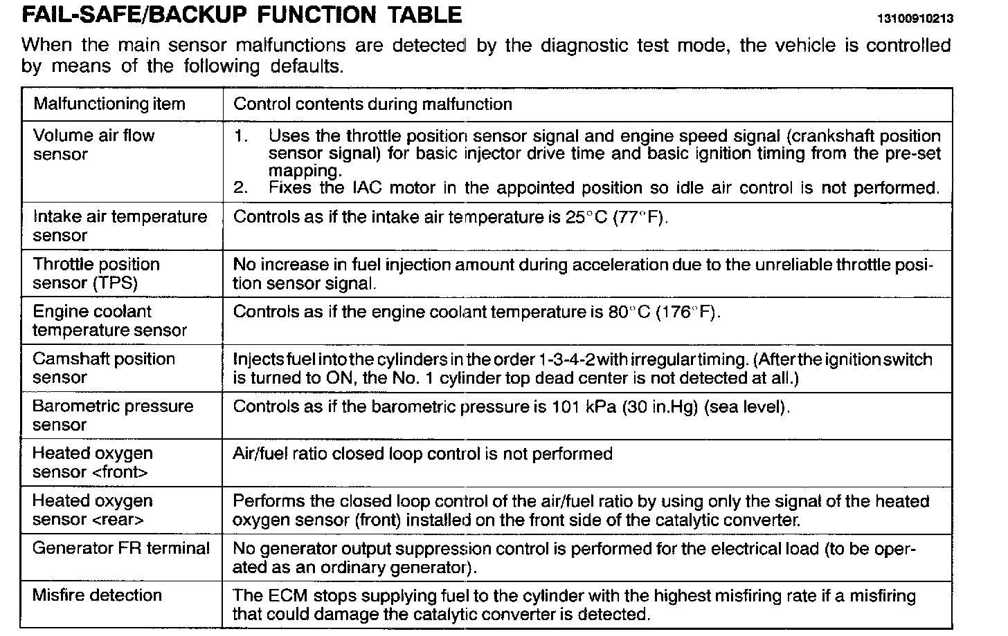 FAIL-SAFE/BACKUP FUNCTION TABLE: