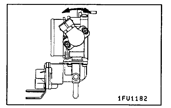 6. Slowly turn the throttle position sensor clockwise until the point at which the idle switch is turned OFF is found. Tighten the throttle position sensor installation bolt at that position. Proceed to step 8.