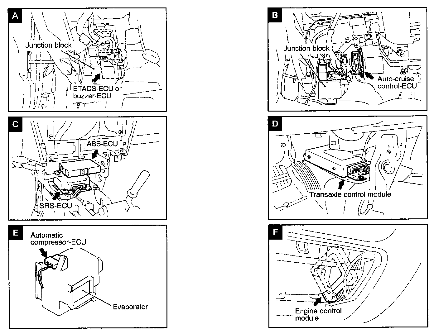 Control Unit Location Views A-F:
