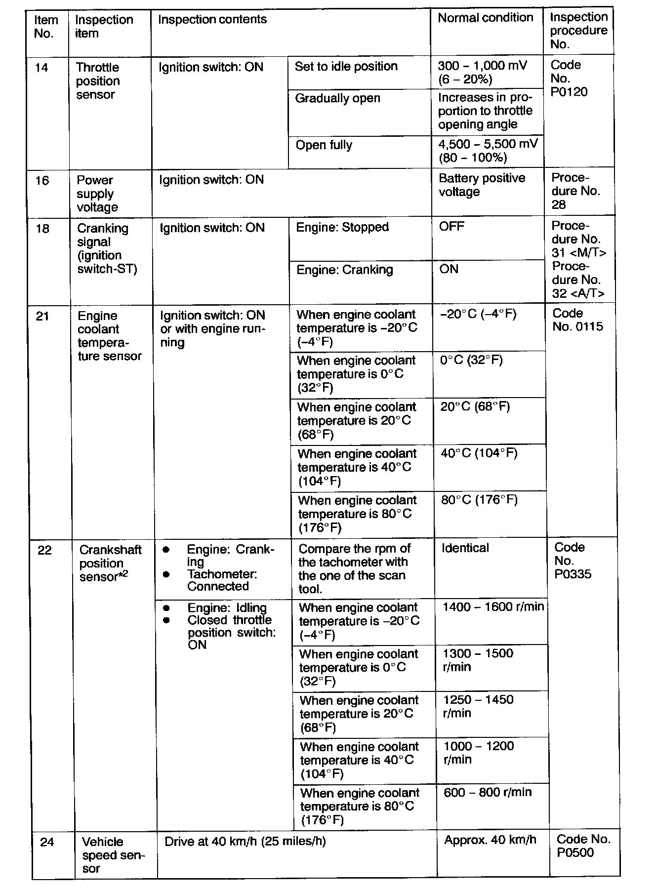 *2: When idling to warm up from an engine coolant temperature of approx. -20 °C (-4 °F), if the idling speed is lower than the standard value even when the IAC motor is fully opened, the air volume limiter built in the throttle body could be defective.