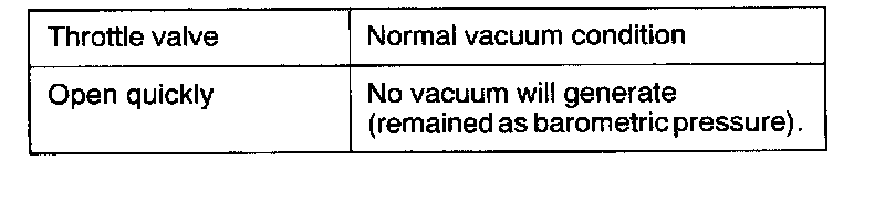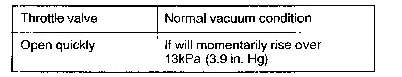 2. Regarding the engine in cold and hot conditions, check the condition of vacuum when engine rpm is increased by opening the throttle valve quickly.