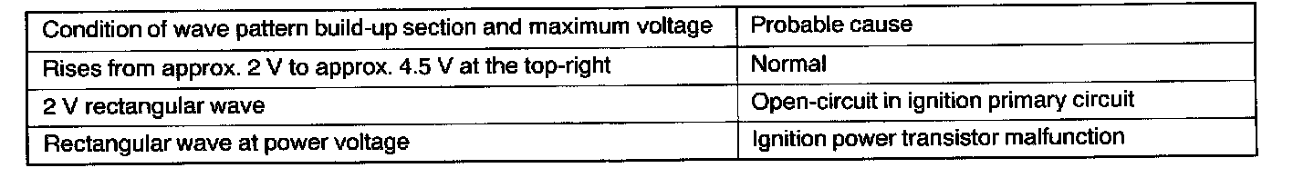 Point: Condition of wave pattern build-up section and maximum voltage (Refer to abnormal wave pattern examples 1 and 2.)
