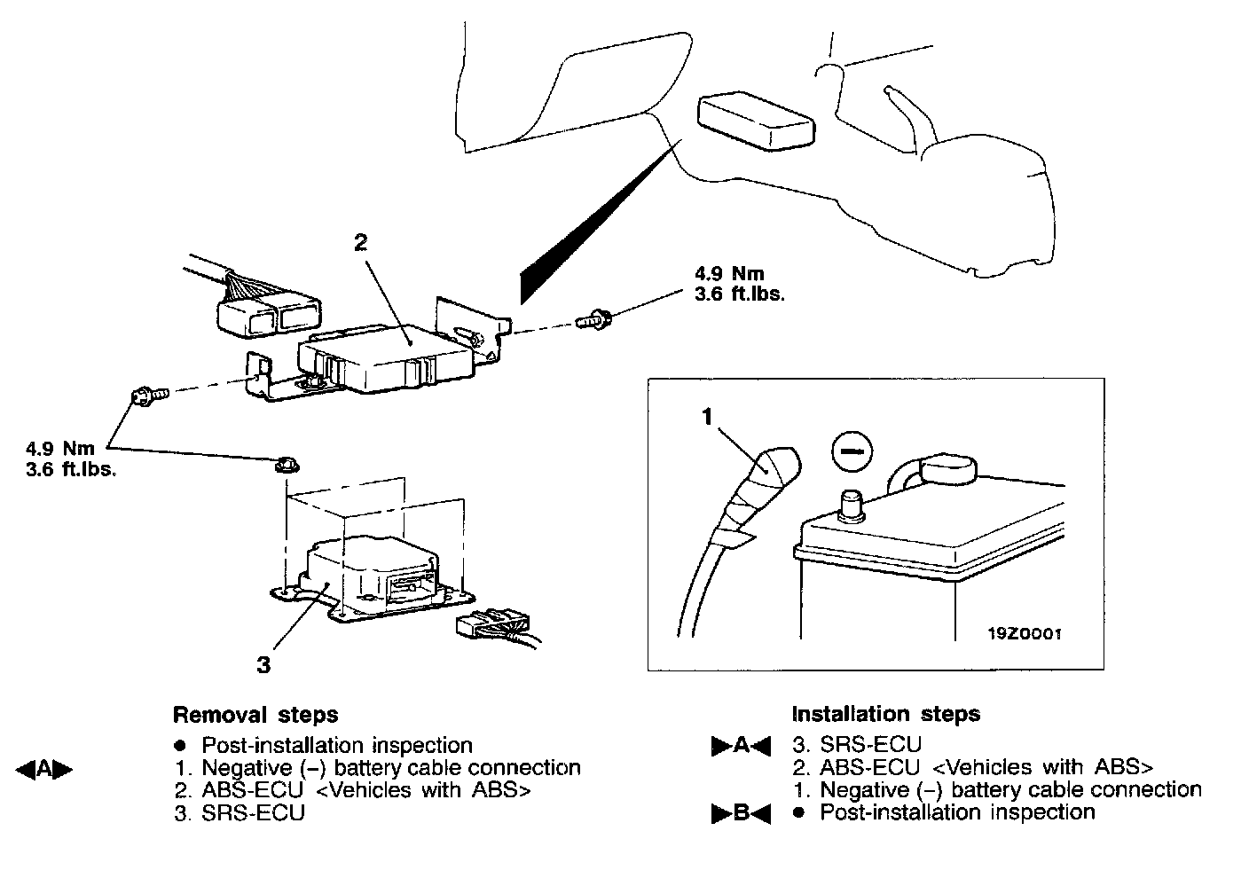3. After deployment of an air bag, replace the SRS-ECU with a new one.