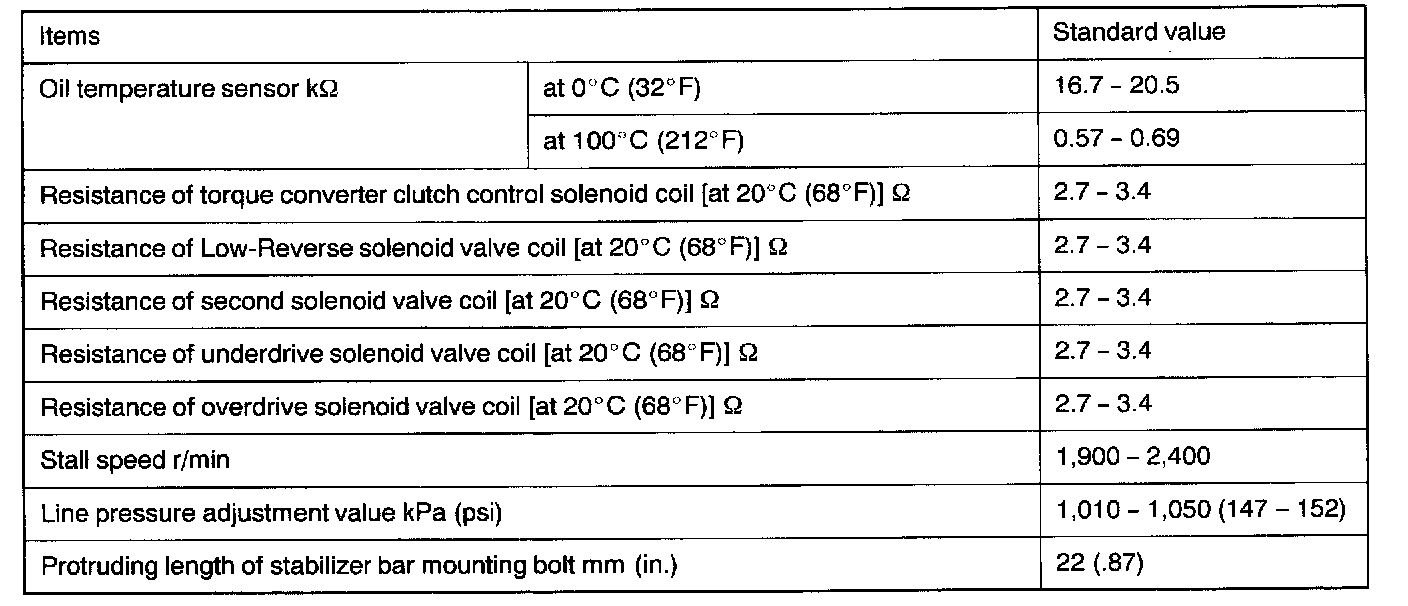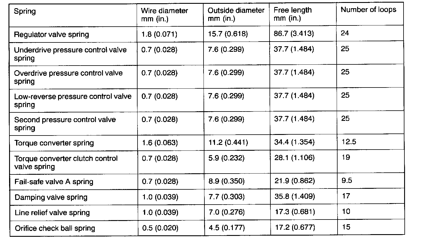 VALVE BODY SPRING IDENTIFICATION TABLE