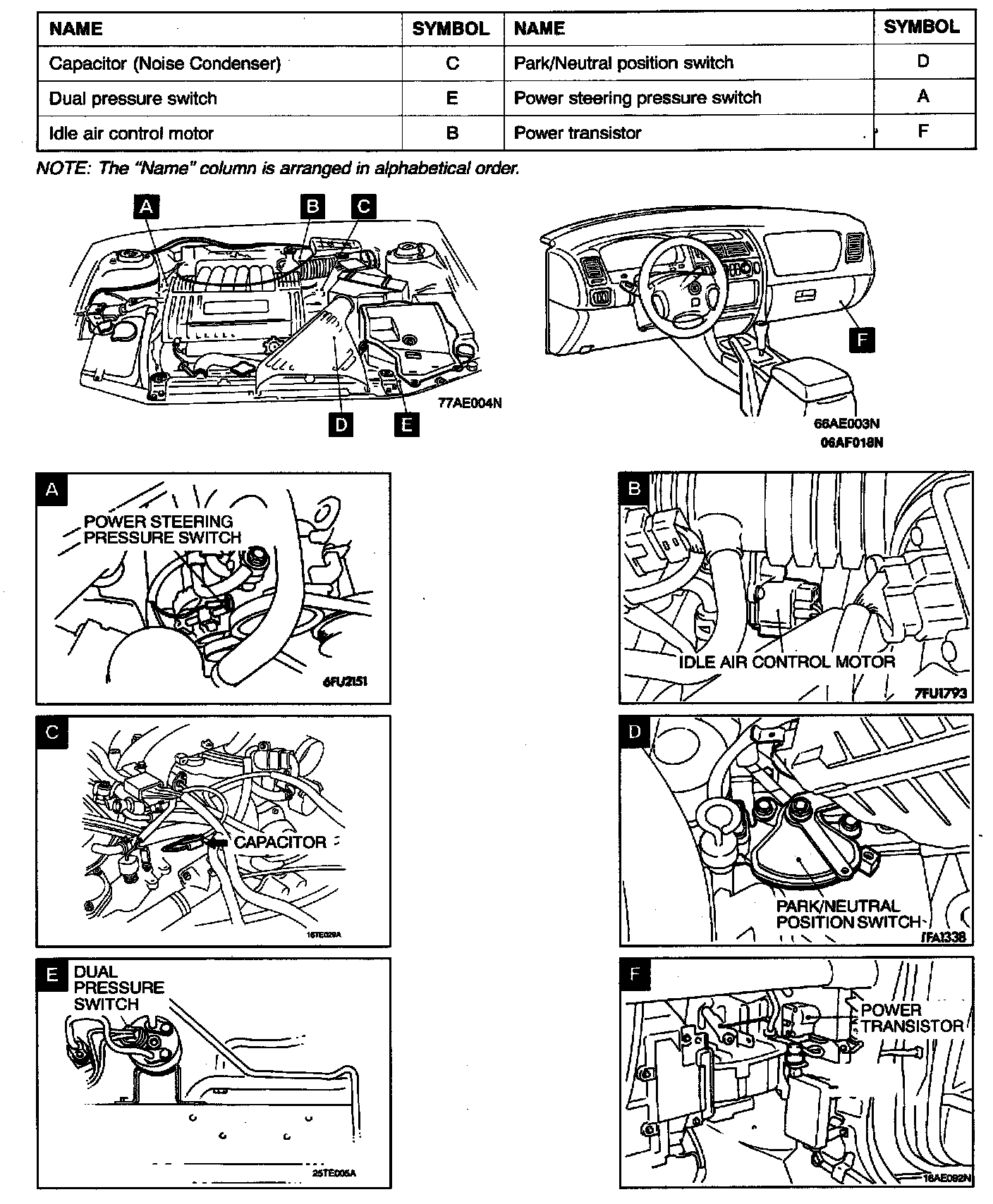 Location Chart, Overall View And Views A - F: